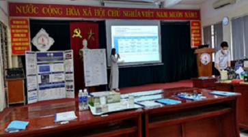 Tác giả đề tài khoa học với Hội đồng đánh giá trước cuộc thi.