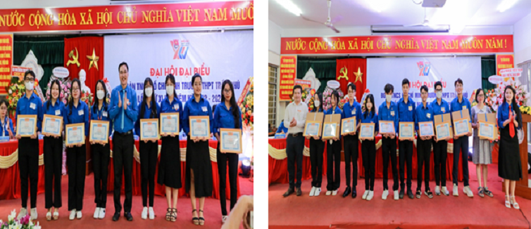 Trao giấy khen và phần thưởng cho những Cán bộ Đoàn, Đoàn viên xuất sắc năm học 2021 -2022.